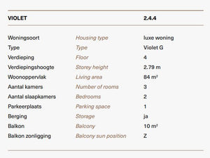 Specifications – Type G – Lots 2.4.4 building Violet: