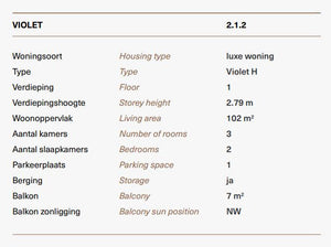 Specifications – Type H – Plots 2.1.2 building Violet: