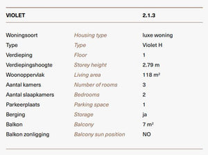 Specifications – Type H – Plots 2.1.3 building Violet: