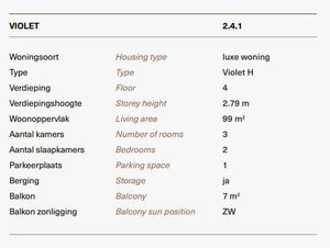 Specifications – Type H – Plots 2.4.1 building Violet:
