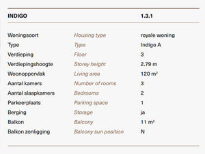 Specificaties – Type A – Kavels 1.3.1 gebouw Indigo: