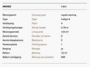 Specificaties – Type A – Kavels 1.4.1 gebouw Indigo: