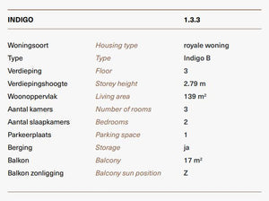 Specificaties – Type B – Kavels 1.3.3 gebouw Indigo: