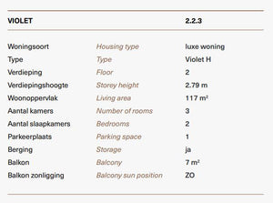 Specificaties – Type H – Kavels 2.2.3 gebouw Violet: