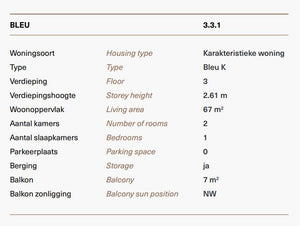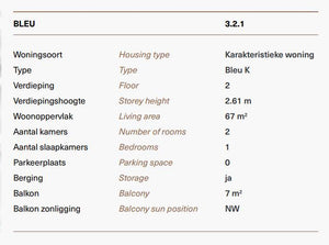 Specificaties – Type K – Kavels 3.1.1, 3.2.1, 3.3.1, 3.4.1 gebouw Blue: