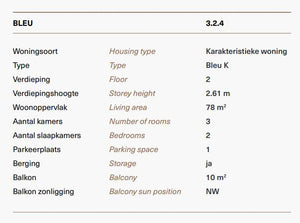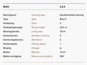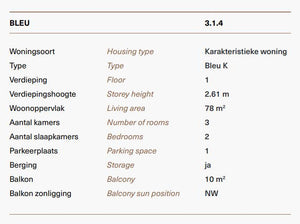 Specificaties – Type K – Kavel 3.1.4, 3.2.4, 3.3.4, 3.4.4 gebouw Blue: